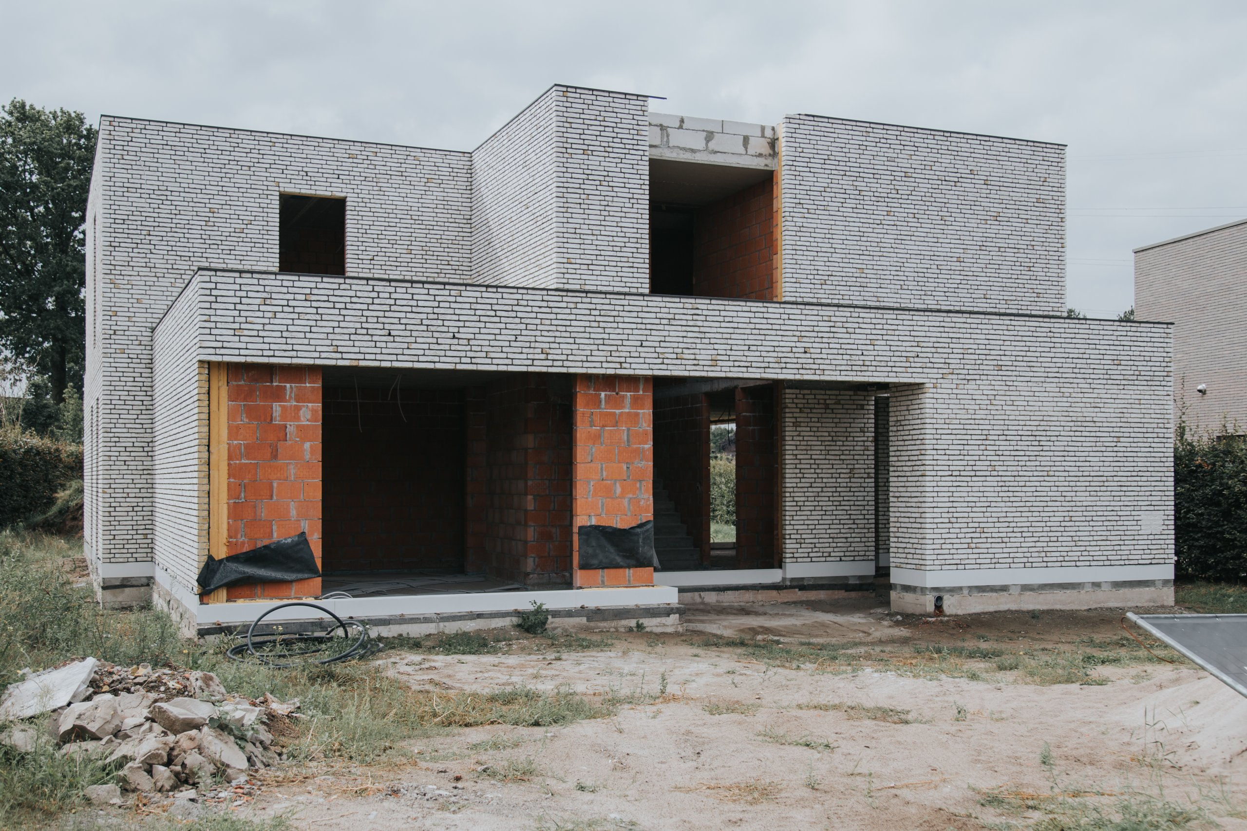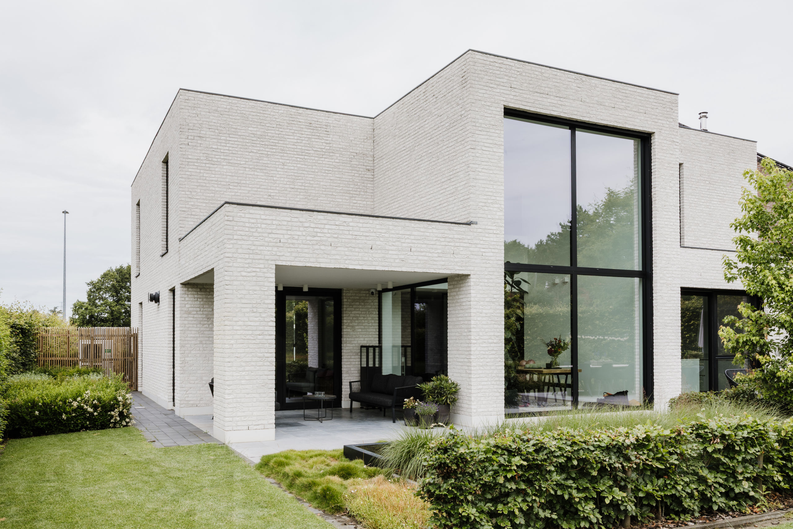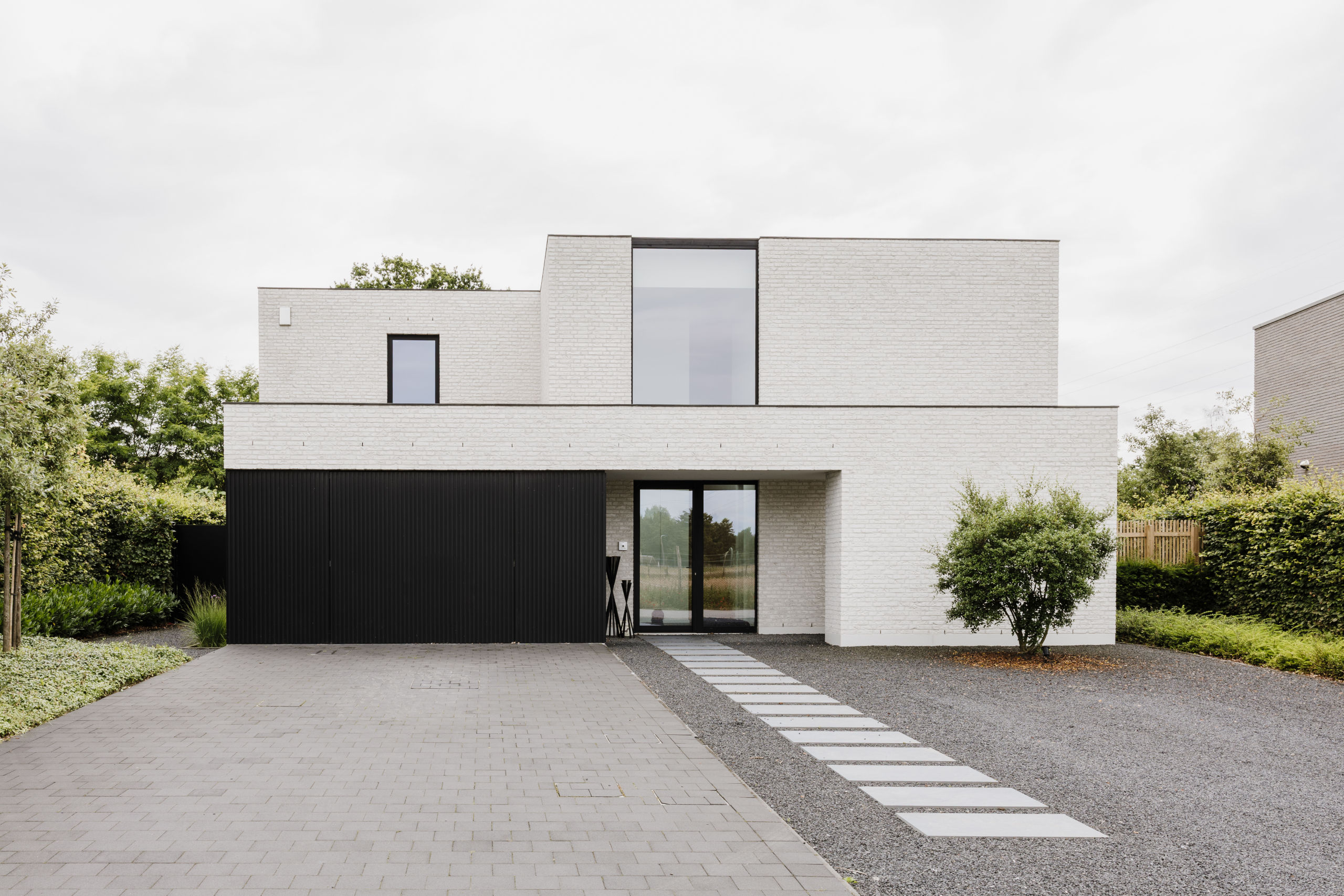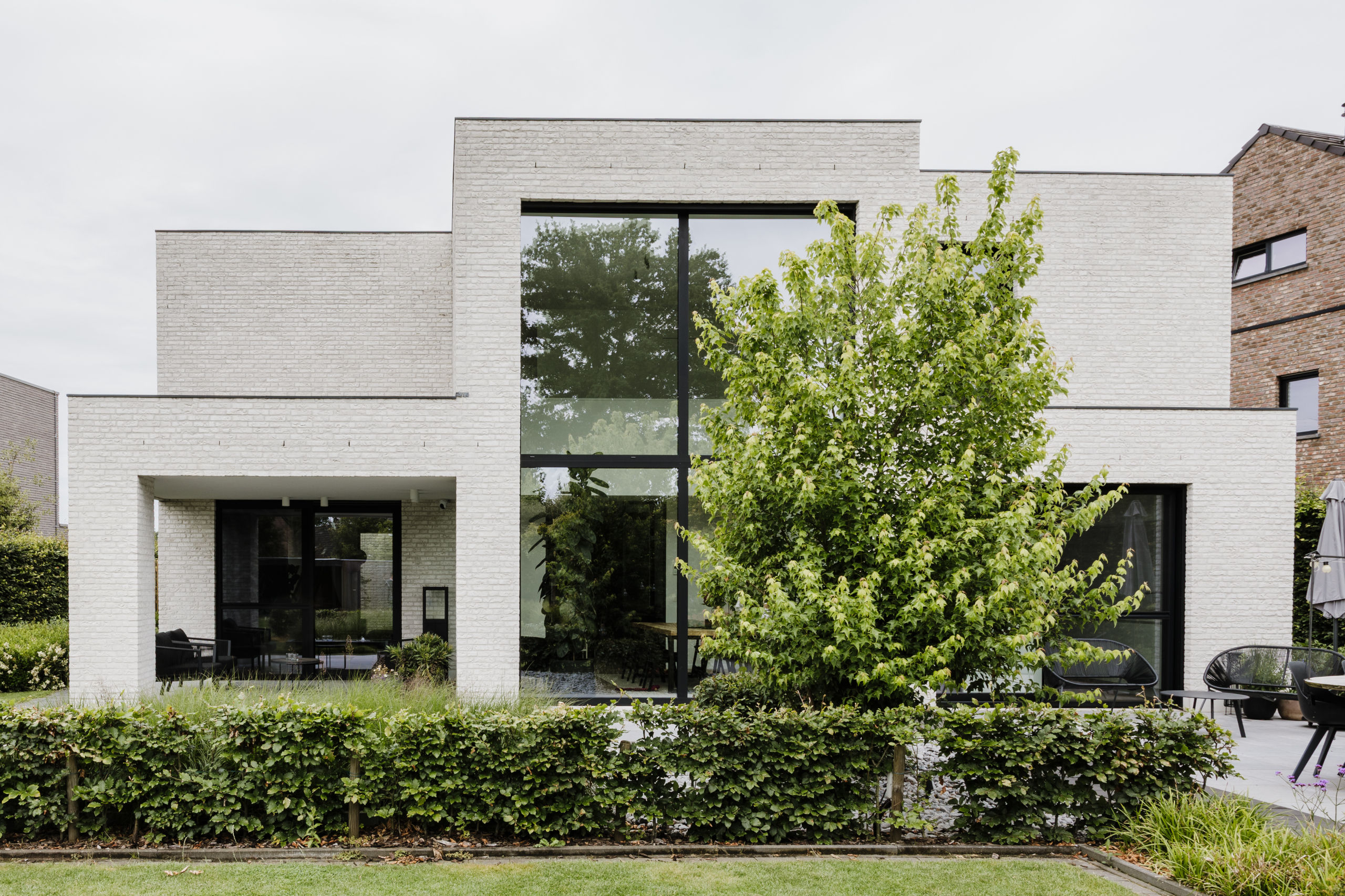 Nieuwbouwwoning in witte gevelsteen i.s.m. Tuinaanleg De Pauw