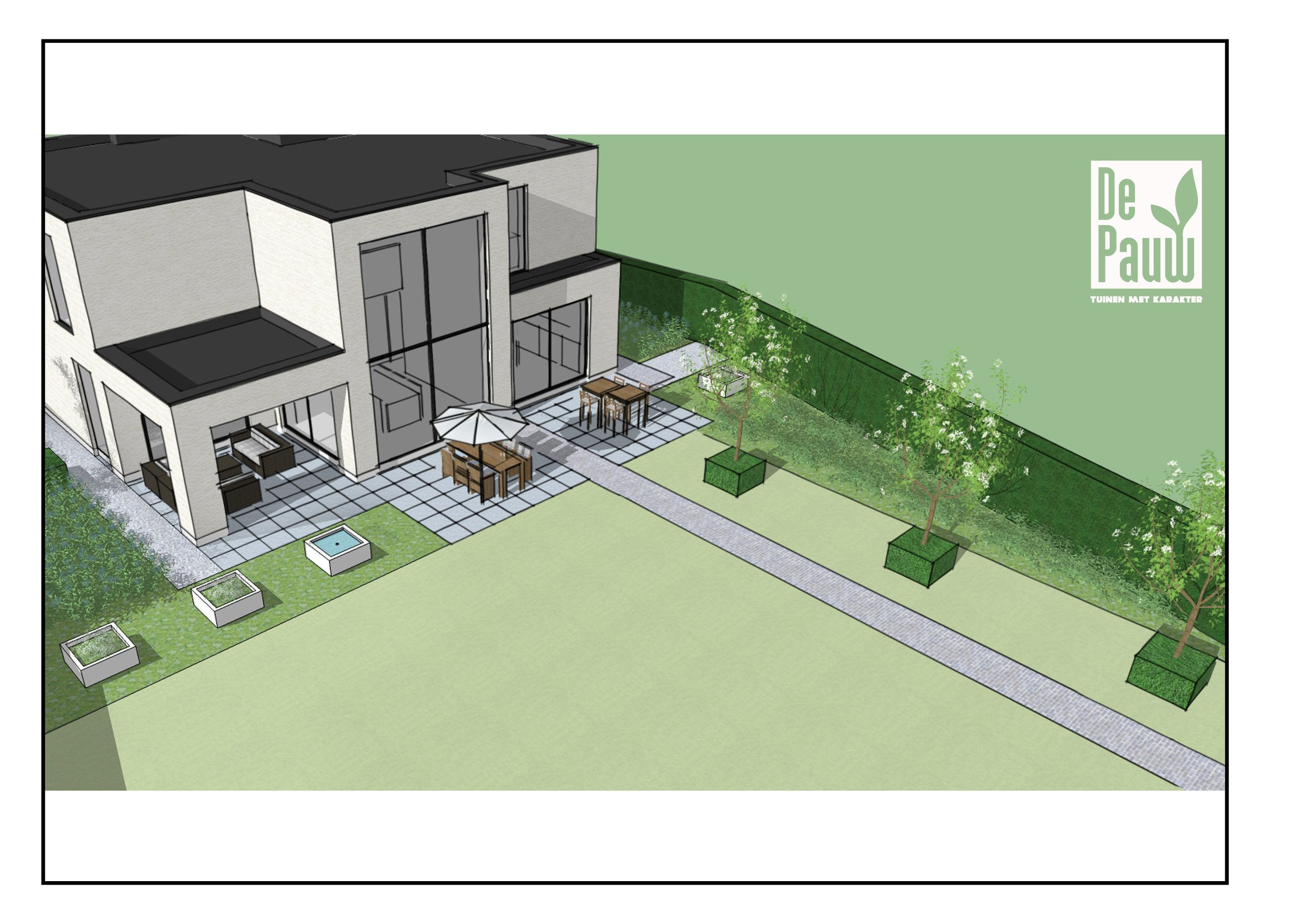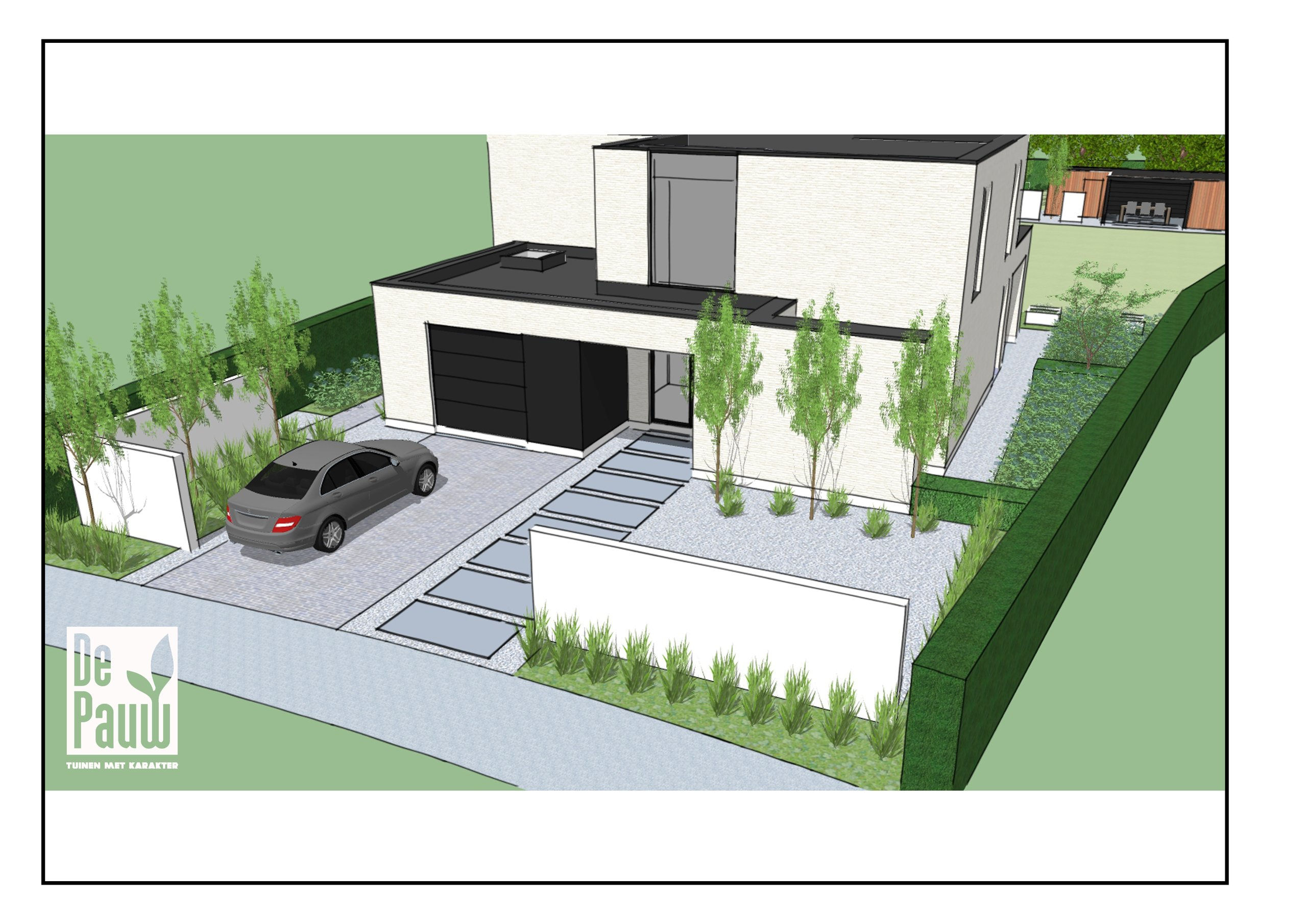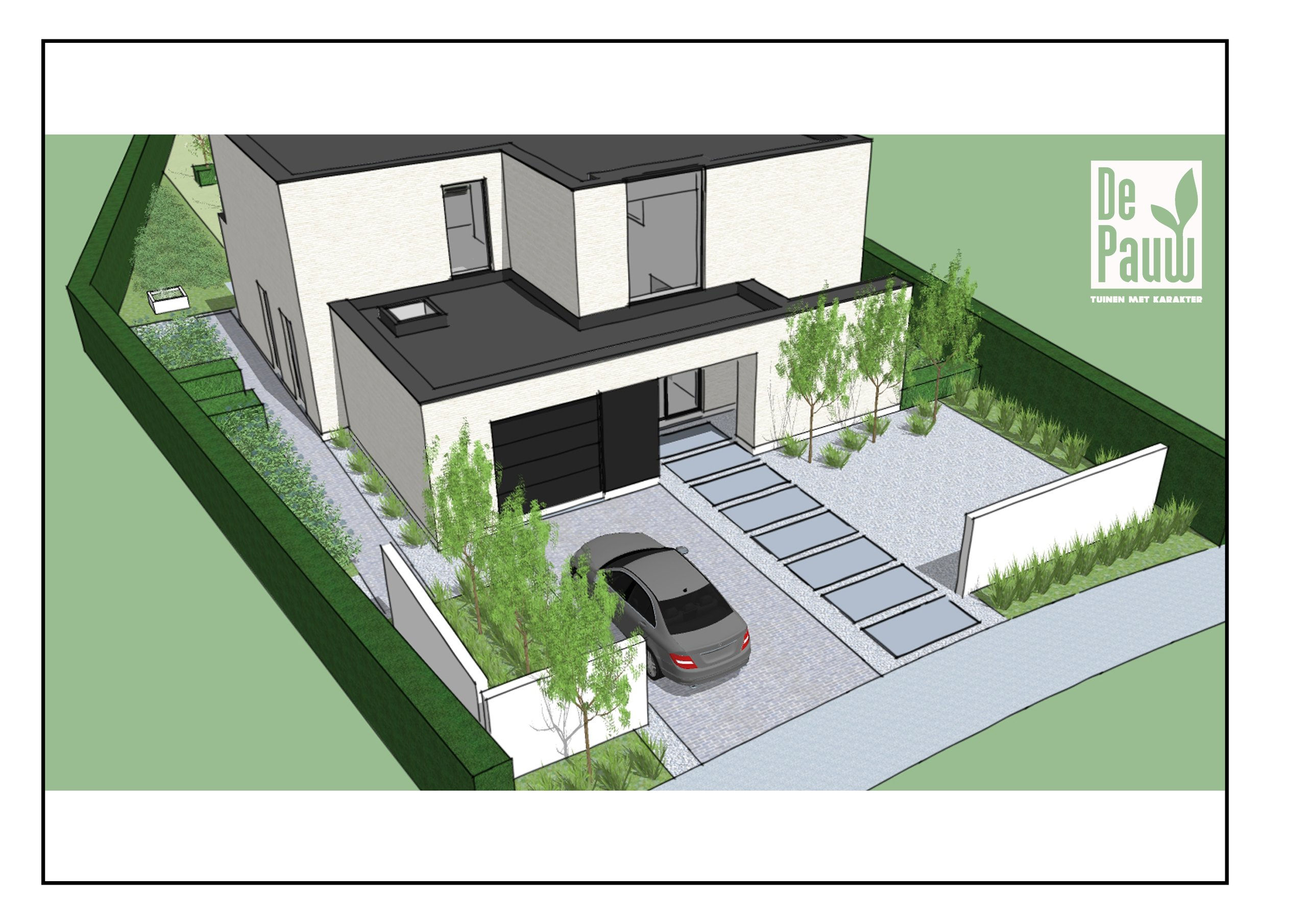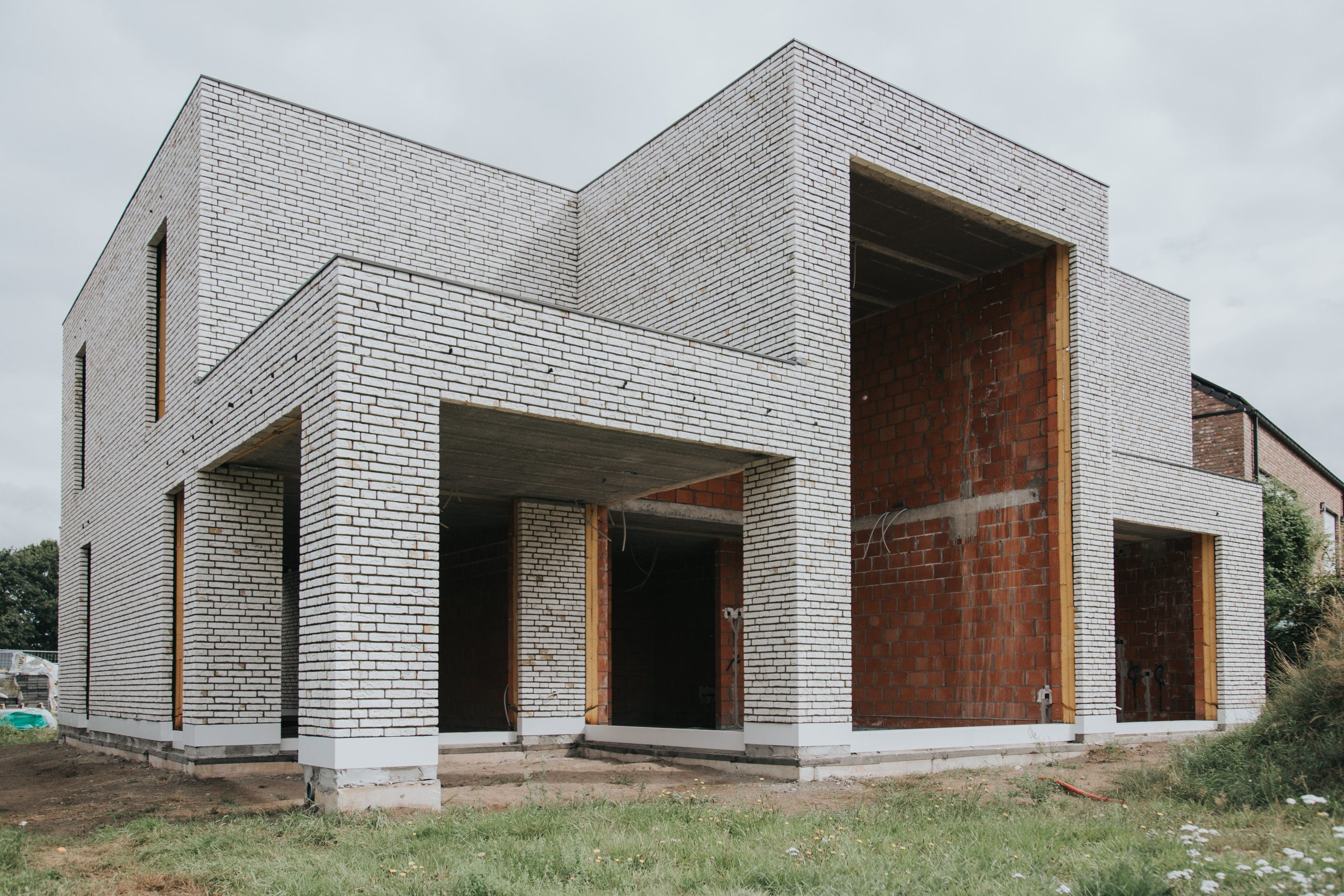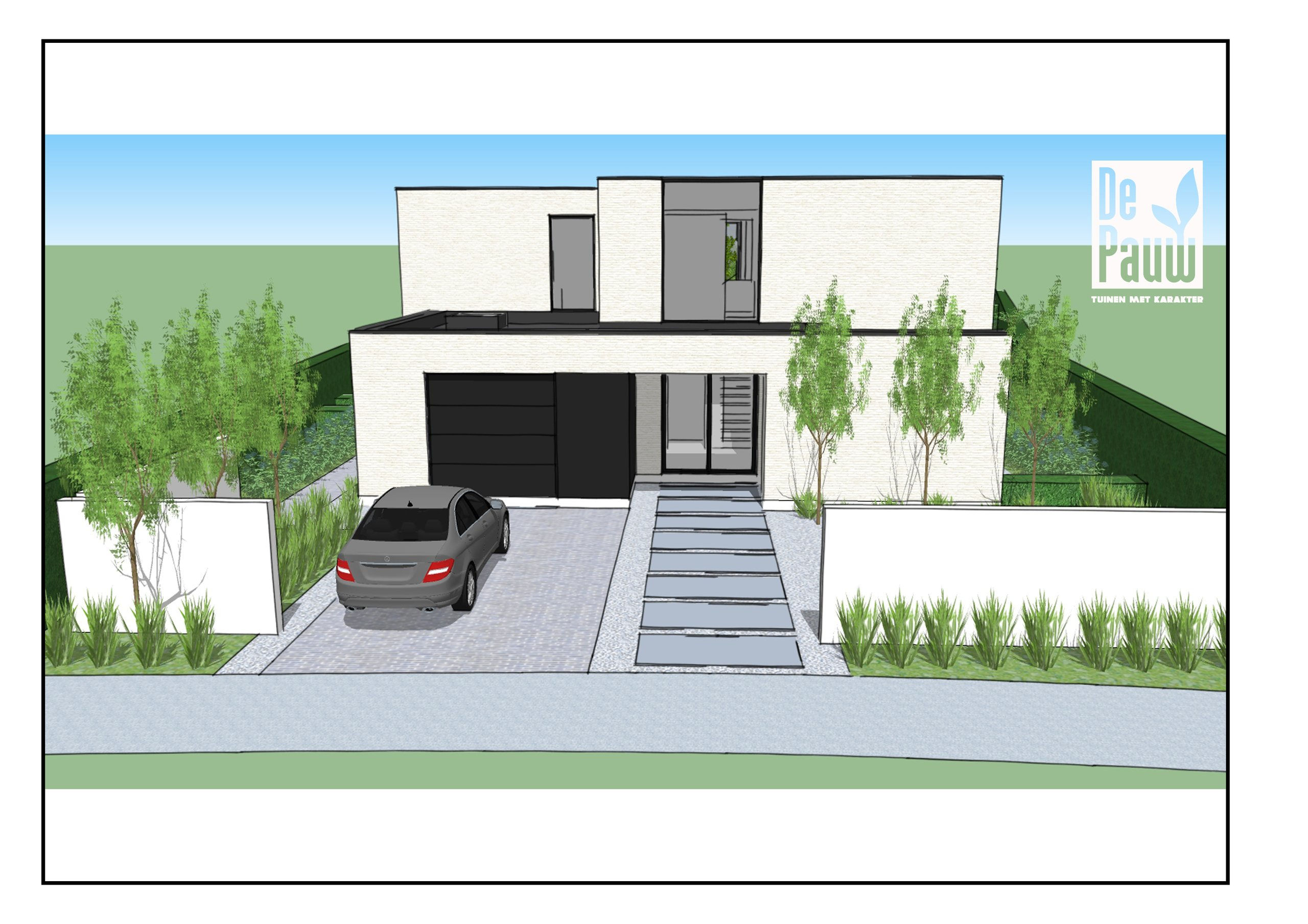 Nieuwbouwwoning in witte gevelsteen i.s.m. Tuinaanleg De Pauw